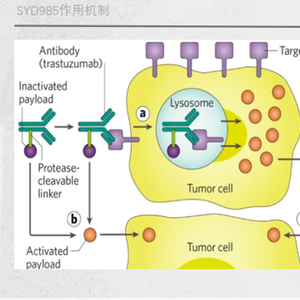 SYD985的研发基于自有ByonZine技术平台,能够让药物在血液循环中保持稳定。从结构上来看,SYD985通过可降解的val-cit连接子将DNA烷化剂杜康霉素与弹头曲妥珠单抗相连接。