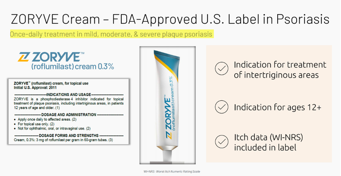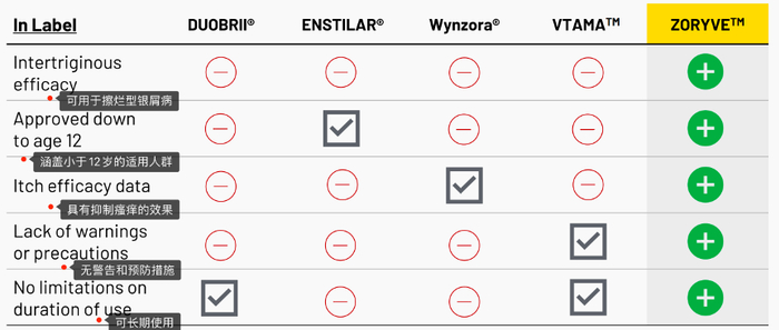 ZORYVE®乳膏是全球首个也是目前唯一一个被批准用于治疗斑块型银屑病(包括间擦性银屑病)的局部外用PDE4抑制剂,