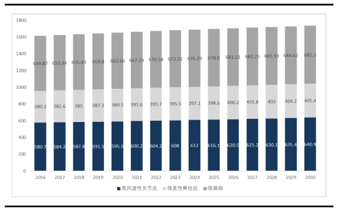 银屑病是一种慢性、复发性、炎症性疾病,主要累及皮肤和关节系统,目前尚无法治愈,需长期甚至终身治疗。近年来,中国银屑病患病人数总体保持稳定,2017至2022年,银屑病患病人数由650万人增至670万人。由于患者需长期反复用药以及国内银屑病上市药物数量增加,中国银屑病药物市场快速扩大,据弗若斯特沙利文报告,中国银屑病药物市场快速增长,预计在2030年将达到94.6亿美元。