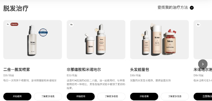 2017年成立的Hims,产品主要针对男性形象三大难以启齿问题:脱发、ED和痤疮,并提供远程医疗咨询等服务。