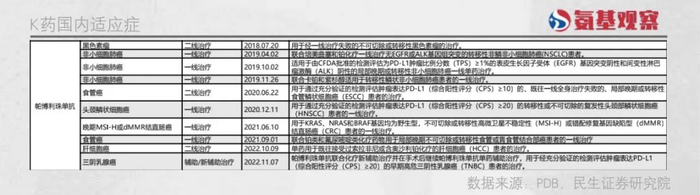 在国内,K药同样是首攻肺癌,在2019年拿下了3个非小细胞肺癌的一线疗法适应症。竞争对手方面,恒瑞医药在2020年攻克了其中的一个适应症,而其它两个适应症要在2021年之后才相继迎来对手。这也让K药有更充裕的时间来建立先发优势。