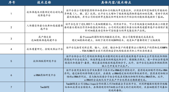 在研发储备方面,君实生物已经成功打造了7个技术平台,包括单抗、双抗、ADC、siRNA等。由于这些这些平台均具有一定特色,未来君实有能力依托这些平台在多个前沿领域构筑具有全球竞争力的管线。