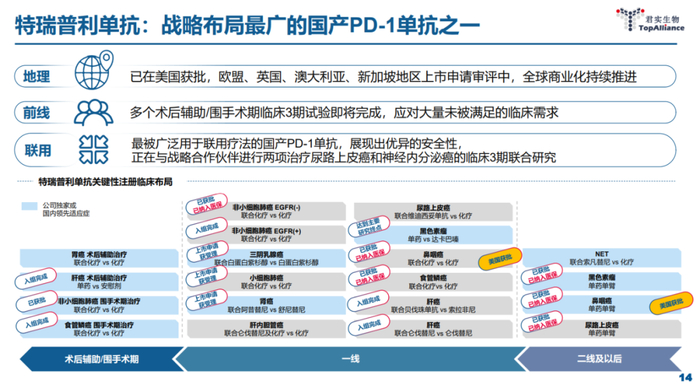 一方面,在辅助/新辅助治疗领域,君实生物处于全球第一梯队、国内遥遥领先的位置。
