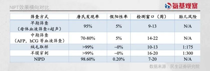简单来说,检出率高,保证不会误诊;而假阳性率相对较低,则保证不会过度浪费社会资源,两者共同让NIPT的产品逻辑无懈可击。