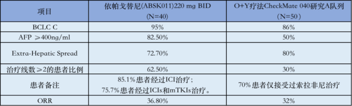 目前,针对经TKIs治疗后病情进展患者的二线疗法中,表现最好的纳武单抗联合伊匹木单抗组合ORR仅在32%左右,并且是在患者预后特征远优于依帕戈替尼临床的情况下取得的。