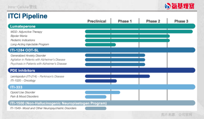 在两项全球范围内开展的双盲、安慰剂对照的3期研究中,Caplyta作为抗抑郁药的辅助治疗,在减轻抑郁症状方面显示出统计学显著和具有临床意义的改善。除此之外,Intra-Cellular还在探索其儿童适应症和长效方案。