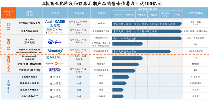 基本盘中,依嘉销售延续快速增长,伊曲莫德获批在即,头孢吡肟-他尼硼巴坦的新药预计在今年递交上市申请;而自主研发管线中,新一代共价可逆BTK抑制剂EVER001、mRNA肿瘤治疗性疫苗在今年也均有重大节点……