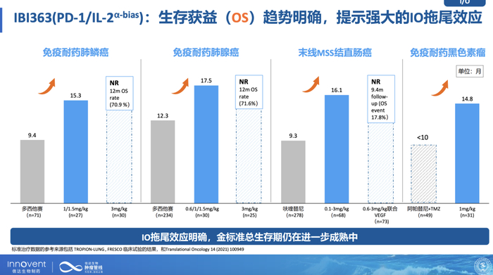得益于差异化的分子设计和“双重免疫激活”机制,IBI363看起来具有全能的表现:对免疫耐药、冷肿瘤均有突出效果,并且是响应率、无进展生存和长期生存的全面获益。