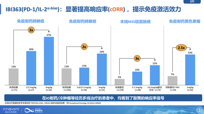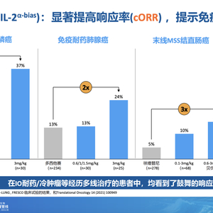 在今年的ASCO大会上,信达生物为我们揭示了这一点。具体而言,在免疫耐药肺癌、冷肿瘤免疫耐药黑色素瘤、冷肿瘤结直肠癌三个最经典的癌种上,IBI363都拿出了突破性的获益优势。