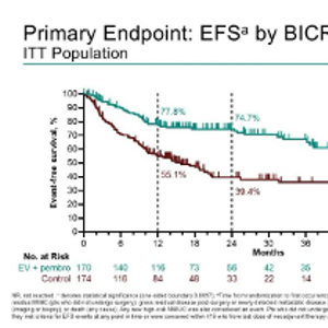 针对不适合或拒绝顺铂治疗的MIBC患者,这一组合在新辅助+辅助阶段展现出颠覆性疗效:pCR高达57.1%,而对照组不足10%,此外事件无进展生存(EFS)显著改善,安全性良好,可耐受性强。