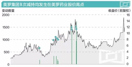 美罗集团的9次减持大致可以分为两个阶段,每次减持几乎都发生在美罗药业股价高企之时,且伴有利好股价的消息。