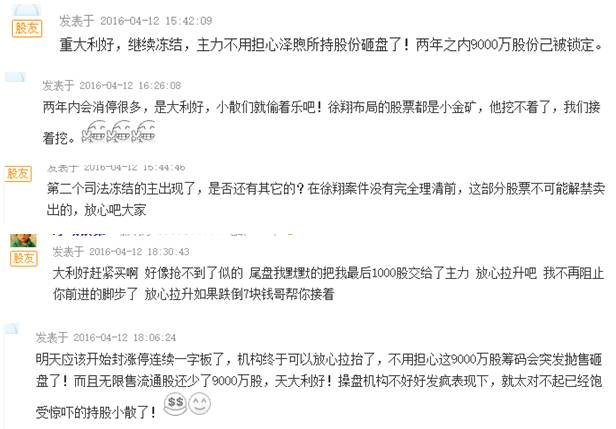 今天发的两份公告,一份解冻,一份轮候冻结——青岛市公安局已向中国证券登记结算有限公司上海分公司送达了《协助冻结财产通知书》,请其协助轮候冻结上海泽熙增煦投资中心(有限合伙)(下称泽熙增煦)持有的公司9000万股无限售流通股及孳息,轮候冻结起始日为2016年4月11日,冻结期限为两年,自转为正式冻结之日算起。