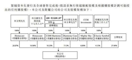面对如此境况,不知和美医疗的两大投资机构作何 感想?根据和美医疗的招股书,创始人林玉明通过全资控股公司Homecare持有和美医疗37.43%的股 权;而早期投资人鼎晖投资则通过鼎晖健艮,全资控股CDH Harmony,再由后者持有13.66%的上市公司股权;另一投资人建银国际医疗基金,其在 上市公司8%的权益,则由母公司的全资控股公司Mighty Sky持有。