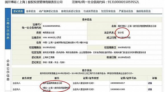 国开博裕企业信息国开与博裕的名字总是一起出现的,好基友吧。上图中的博裕上海股权投资管理有限责任公司,在下图中有其明细。请注意其高管之一童小幪的名字,后面还会出现。