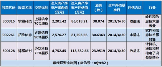 Wind数据显示,2015年未完成业绩承诺中溢价收购最高的前三家公司分别是掌趣科技、拓维信息和锦富新材。