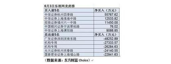 虽然游资担当了接盘侠,机构却站在了他们的对立面上:卖出席位上有两家机构,合计净卖出为5.36亿元。从乐视网龙虎榜席位总体情况看,买入前5名净买入8.89亿元,卖出前5名净卖出14.89亿元。