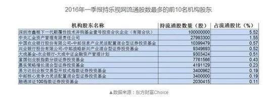 东方财富Choice数据显示,截至2016年一季报,共有74只基金持有乐视网股份,另外还有一家基金资管计划、两只券商集合理财产品。