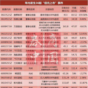 据券商中国记者统计,今年以来共有36起以“买壳上市”为目的并购重组事件,交易总价值达到3378.79亿元,除了11起已经完成、1起被股东大会否决,还有24起正在进行中。其中,有7起借壳上市还处于董事会议案阶段、未通过股东大会表决,如在新规则实施前都未能通过,或将增加其通过压力。