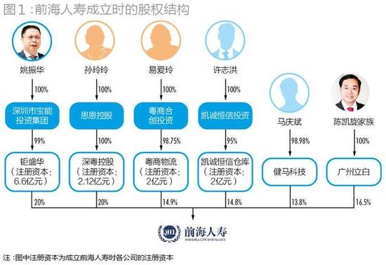 乍看起来,前海人寿成立之时的股东架构颇为均衡,各方股权独立,且持股比例最高为20%、最低也有13.8%,看似并无实际控制人,然而细究下去,并非如此(图1)。