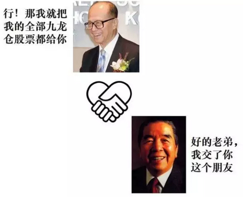 李嘉诚把手中的1000万股九龙仓股票以三亿多的价钱,转让给包玉刚。包玉刚协助李嘉诚从汇丰银行承接和记黄埔的9000万股股票。