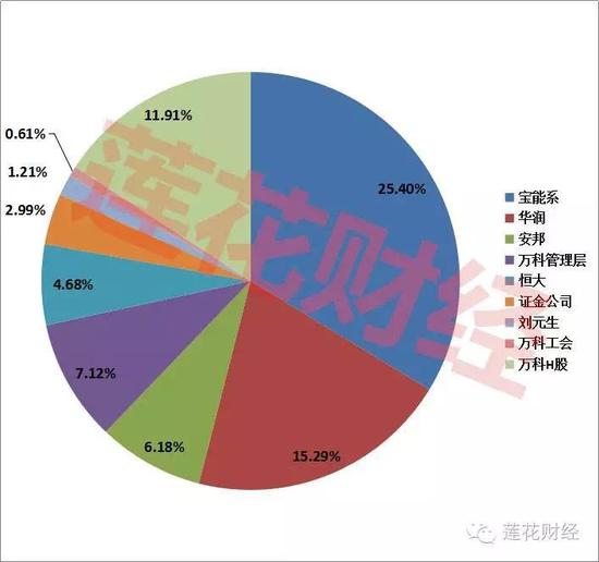 最新数据显示,目前宝能系持股25.4%,华润持股15.29%,安邦持股6.18%,万科管理层及相关资管计划合计持有约7.12%,恒大持股4.68%,证金公司持股2.99%,刘元生持有1.21%,万科工会持股0.61%,加上万科还有H股(占总股本的11.91%),万科A股的实际流通盘仅有24.61%。若算上部分指数基金的被动持股,万科A的实际流通盘将不足24.61%。