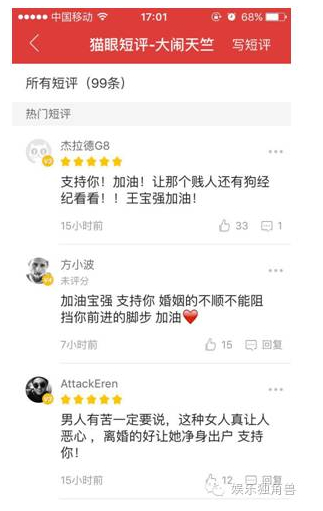 而“娱乐独角兽”今天查阅了豆瓣的影评,发现还未上映的《大闹天竺》未播先火,很多网友都点了“五星级好评”,并表示将“力挺王宝强”,不知道在一场轰轰烈烈的“出轨门”背后,最大的赢家会不会是光线?