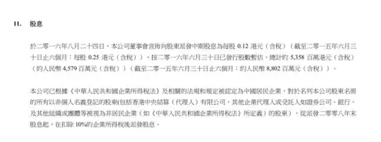 中海油董事长杨华在半年报中称,基于公司的财务状况,董事会决定派发2016年中期利息每股0.12港元(含税)。按照2016年6月30日发行股数暂估,派息约45.79亿元人民币。