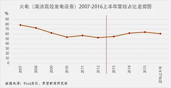 但2013年开始,公司的火电产品营收比重有所抬头,虽不及2009年之前一度超七成的占比分量,但整体表现出上升趋势。2015年,公司高效清洁发电设备产品营业收入230.32亿元,占总营收比重的63.95%。今年上半年,该项产品收入为111.41亿元,占比依旧高达61.15%。