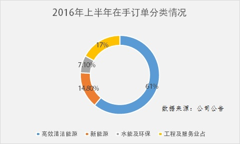 反映在东方电气身上则体现为,其火电产品在上半年拖了公司业绩的后腿。根据半年报,公司清洁高效发电设备营业收入比去年降低7.88%。对此,公司解释是由于火电收入大降23.41%而造成的。此外,公司清洁高效发电设备的毛利率为12.09%,较2015年底减少了4.03个百分点。