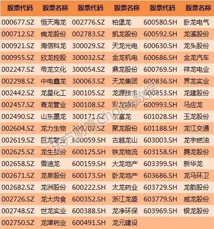 龙作为中国的象征之一,名字带有龙的真不少,一共有53只,见下表: