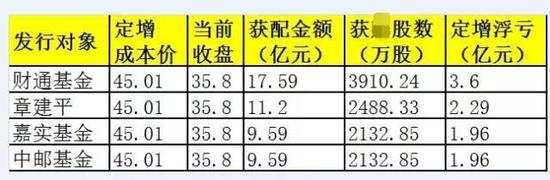 参与定增公募和牛散浮亏逾9亿。据基金君粗略估计,三家公募基金浮亏近5.6亿元,而章建平一人亏损约2.29亿元。
