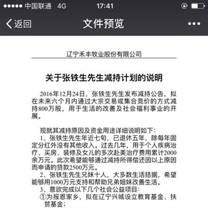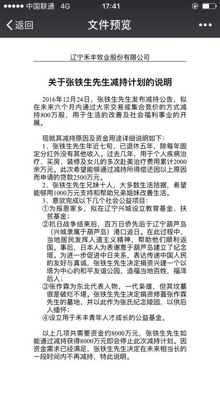 今日,在投资圈有一个详细的减持理由引发广泛关注,张铁生公布的减持理由是:用于本人资金需求以及公益事业的捐赠。其中提到修建张作霖陵园和改善中日关系。