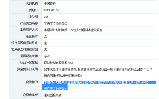 更进一步,从认购资金来源可以看得更清楚,涉及到的投资者应该更多,其中,通过“东方基金定增优选1号资产管理计划”参与的中银智富理财计划2014-127-HQ、2014-128-HQ的认购投资者共计673名。这样的方案,自2015年10月监管层要求不超过200人之后已不再有。另外,网上检索了一下,中银智富理财计划2014-127-HQ的情况,貌似是银行代销的一年期理财产品,而投资却是三年期的项目。