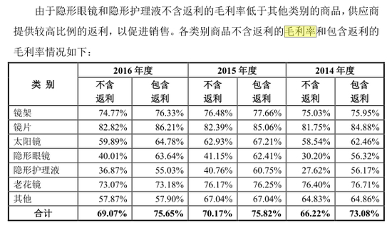 招股书显示,从产品类别来看,其镜片的毛利率高,镜架的毛利率次之,隐形眼镜及隐形护理液的毛利率相对低。上千眼镜,采购价仅几十元!