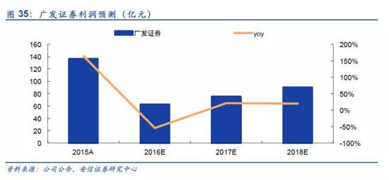 广发证券投行业务持续保持领先优势。公司推动由传统“通道型投行”向综合化金融的“资源配置型投行”转变,2016年前三季度公司实现投行业务收入21亿元(占比14%),同比增长82%。2017年2月17日证监会发布再融资新规,IPO审批加速,预计再融资新规对券商投行业务收入的影响为下降7%左右,影响有限,并且再融资和IPO将此消彼长,预计2017年IPO规模将突破2300亿元,带动投行收入保持10%以上的增速。广发证券IPO业务占比相对较高,在再融资新规下业绩将更为稳定。