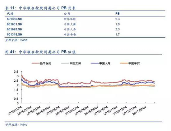 (2)中华联合控股:将中华联合与中国太保、中国平安、中国人寿三家上市险企作对比,给中华联合1.9倍PB。