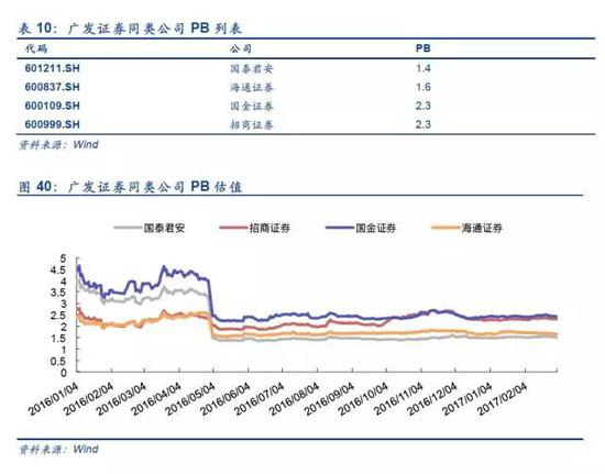 (1)广发证券:将广发证券与投行实力优势相对明显的中信证券、国泰君安、海通证券、国金证券和招商证券做比较,根据对比,给广发证券2倍PB。