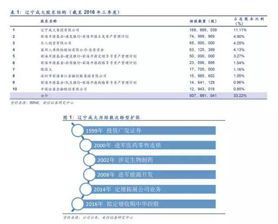 辽宁成大成立于1993年,公司控股股东为成大集团(持股占比11.11%),辽宁省国资委是公司的实际控制人。1999年以来公司数次转型扩张,陆续涉足金融、医药、生物制药、能源开发等多个领域,2014年以来宏观经济下滑、油价大幅下跌,导致公司业绩趋缓,预计未来公司传统板块将企稳,金融板块将持续提升公司价值,定增带来的新晋股东也将提振整体实力。