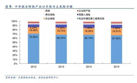 中华联合财险以车险为主农险为辅。虽然中华联合财险产品结构以车险为主,但其农险业务优势突出,在业务网路方面,公司已经在全国17个省的4151个乡镇建立了农业保险服务网点,专业技术方面,中华控股引入了农业保险新技术应用,大幅缩短了结案周期,提高了定损精确度。预计未来农险产品业务占比将有所提升。
