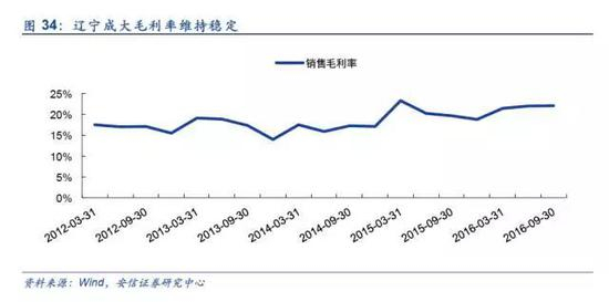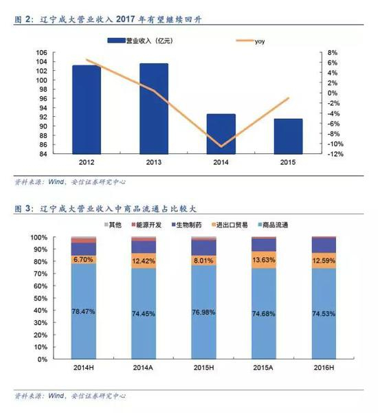 ①能源开发业绩逐步改善。由于国际油价大幅下跌,公司油页岩业务增速趋缓,不过成大弘晟减值带来的影响已基本体现,新疆宝明技术提升取得进展,预计未来业绩将逐步改善。②生物制药利润增长稳定。成大生物目前已挂牌新三板,2014年以来净利润维持稳定增长,预计2017年利润将与2016年基本持平。③商贸流通产业调整蓄力未来发展。2012年以来商贸流通营业收入在公司总营业收入中的占比超过80%,是营业收入的主要组成部分,公司处置家乐福股权进行产业调整,为公司下一步发展蓄力。