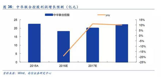 中华联合控股利润增长预测:预计2016年中华保险净利润将达到18亿元(同比-19%),2017年净利润将达到20亿元(同比+11%),2018年净利润将达到22亿元(同比+10%)。