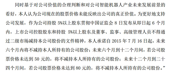 2015年7月16日,姚国际曾对自己的减持行为进行过承诺。“承诺自2015年7月16日起,未来6个月内将不减持本人所持有的公司股份;未来6个月到12个月间,若公司股票价格未达到50元的,将不减持本人所持有的公司股份;未来12个月到24个月间,若公司股票价格未达到80元的,将不减持本人所持有的公司股份。”姚国际在一份公开承诺函中表示。