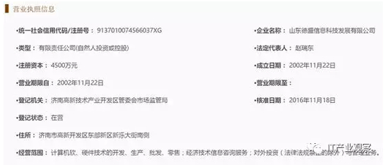 山东德盛的股东是两个自然人,赵瑞东、持股61.94%,韩杰持股38.06%。而且,赵瑞东是执行董事兼经理,韩杰任监事,不但没有董事会,连经理都兼任了,估计整个公司员工总数应该是个位数。该公司注册资本4500万,持有浪潮集团25%的股权。