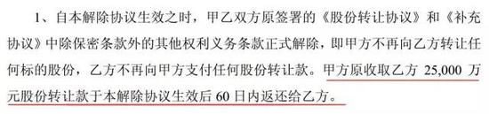 并签署解除协议:双方约定互不追究责任,此前龙薇传媒预付的2.5亿元定金也原路退回。