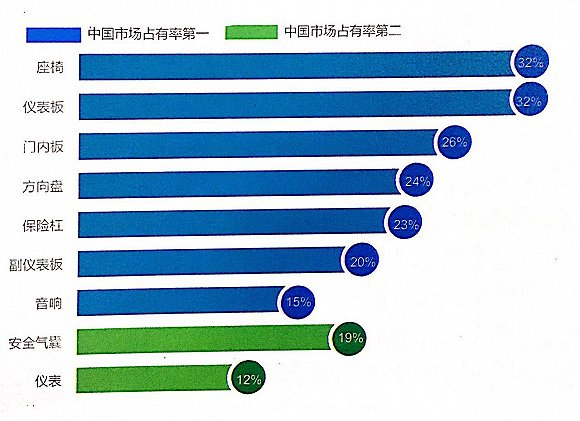 延锋汽车主要产品2016年的国内市占率。图片来源:延锋汽车
