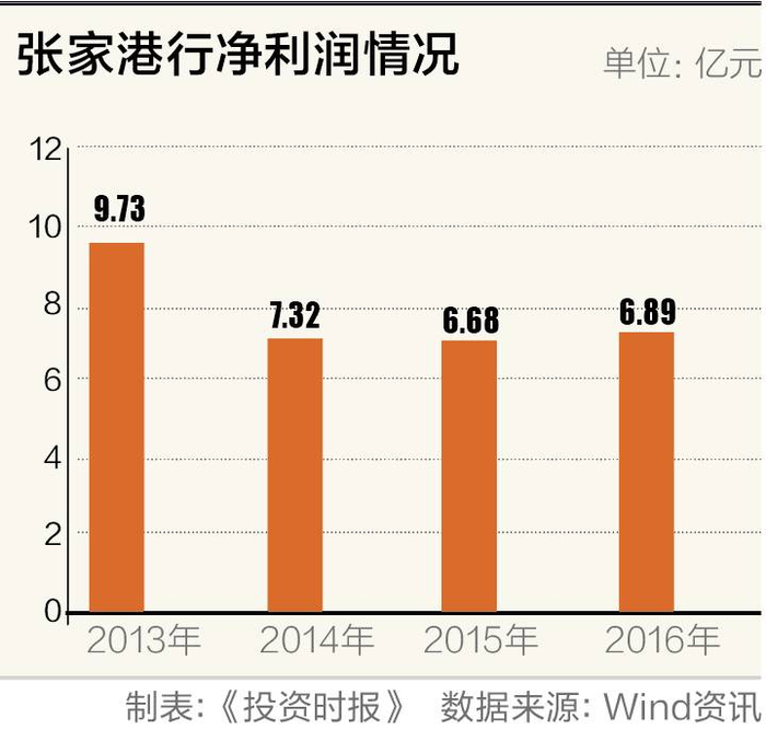 2016年,张家港行净利终于首度上涨,实现归属于股东的净利润6.89亿元,同比增长2.45%。此前发布的招股说明书显示,2013年至2015年,该行归属于股东的净利润分别为9.7亿元、7.3亿元、6.7亿元。