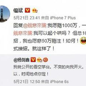 但斌与梁瑞安打赌的对手其微博认证为邑品投资董事长杨剑鑫。后者在微博上称,自己“旗帜鲜明地看空茅台”,并认为五年内茅台股价会跌至200元甚至更低。