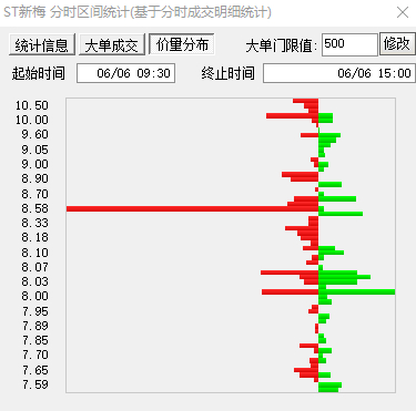 而从价量分布的统计图上可以看出8.58元是成交价格的密集区,昨日ST新梅有效成交的时间仅仅为七分钟,其中几乎全部由超过千手的大单主导,我们姑且上述营业部按照8.58元的价格买入,今日以ST新梅跌停价格7.27元计算的话,买入机构总计浮亏已超过500万元。而今日ST新梅成交额仅为2017万,或许已经有机构提前割肉逃跑了。