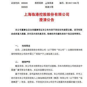 上海临港澄清公告
