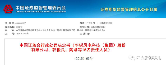 证监会根据上述违法事实决定对华锐风电及相关责任人员做如下处罚: